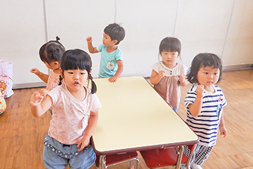 9:40 朝礼 「ほとけさまおはようございます、せんせいおはようございます、みなさんおはようございます。」子ども達の元気な挨拶で1日が始まります。