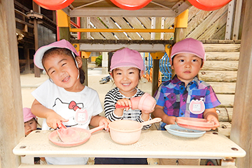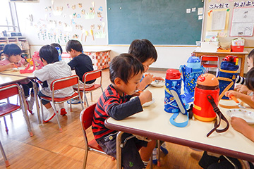 11:30 給食 園での手作り給食を、いのちに感謝し、みんなで楽しくいただきます。